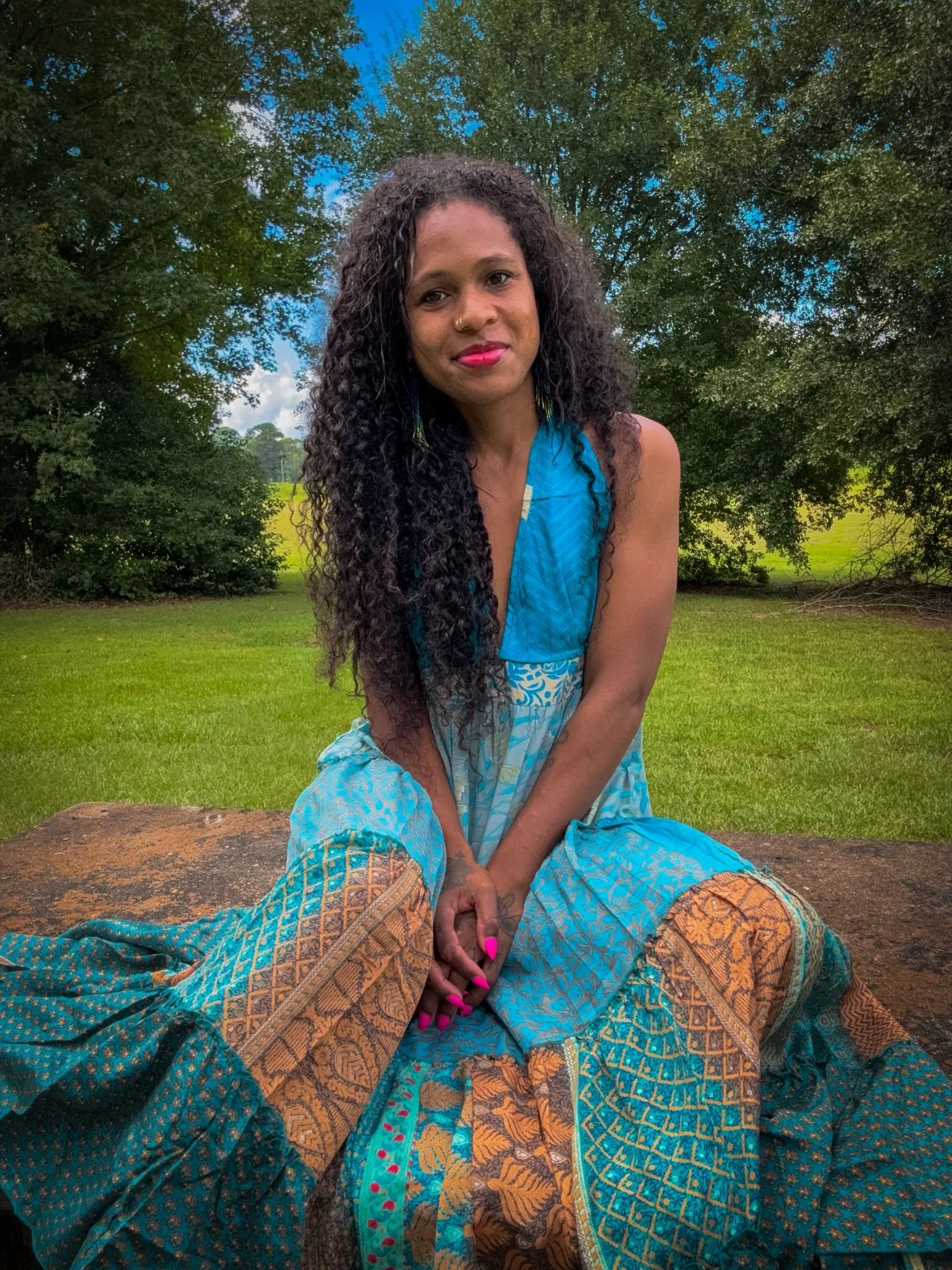 Living in an interfaith family, she describes herself as an offering of alhamdulillah and hallelujah while still being firmly rooted in her traditional Yoruba and Chahta spiritual practices.